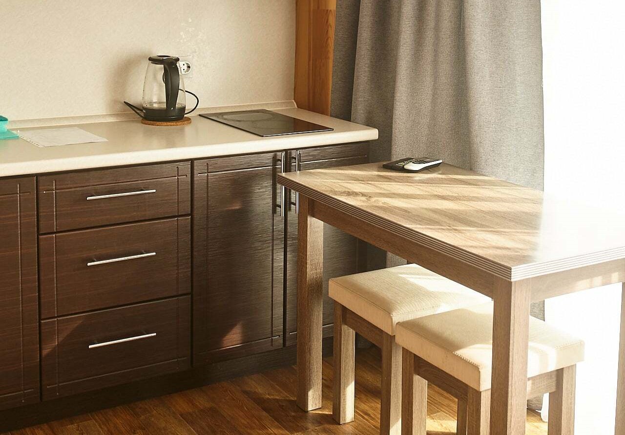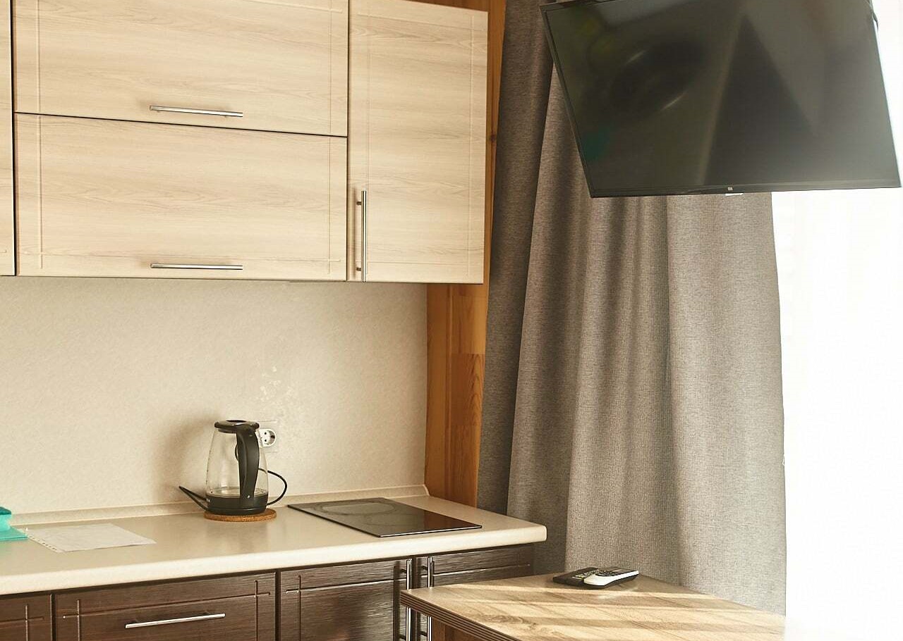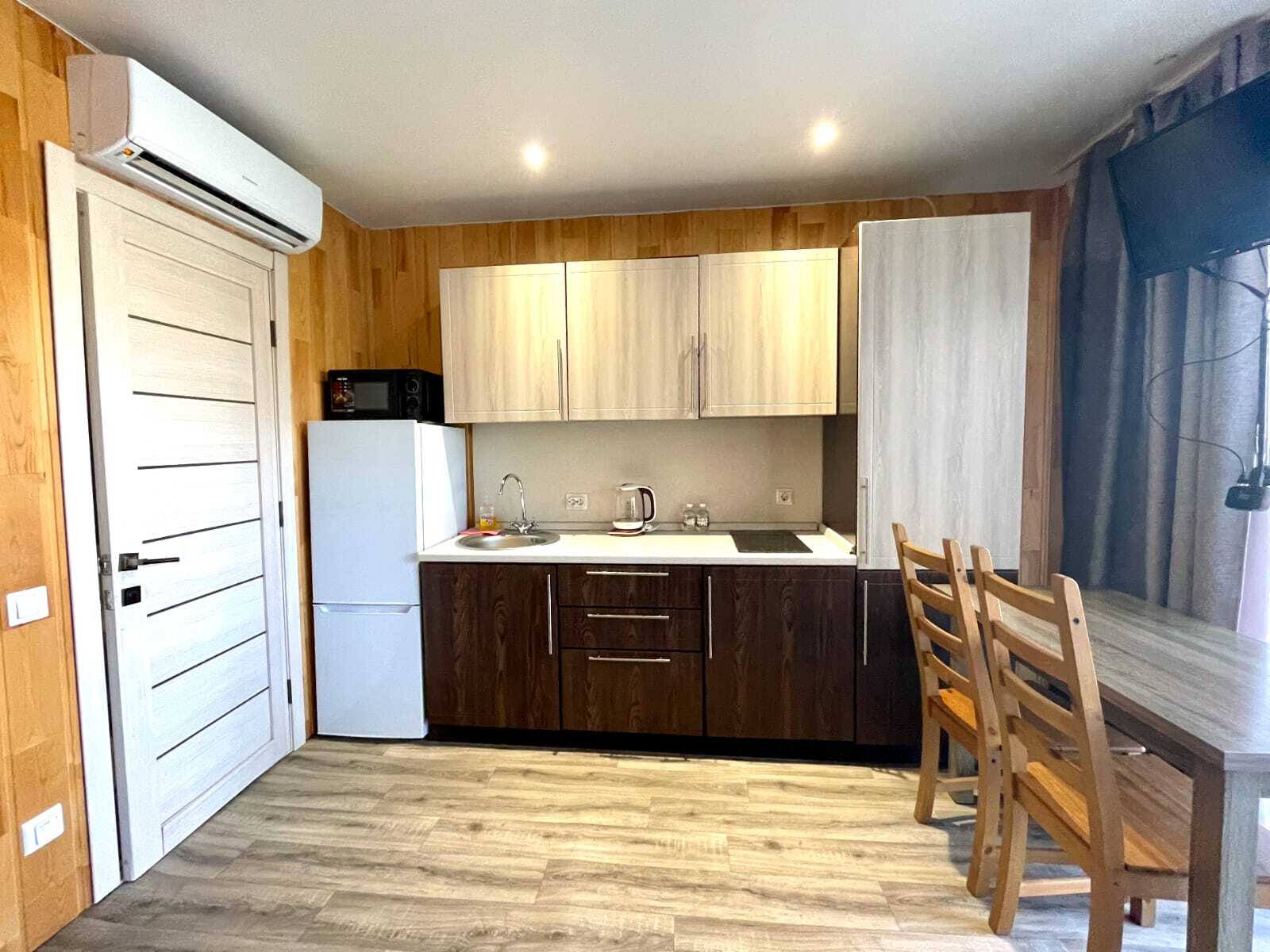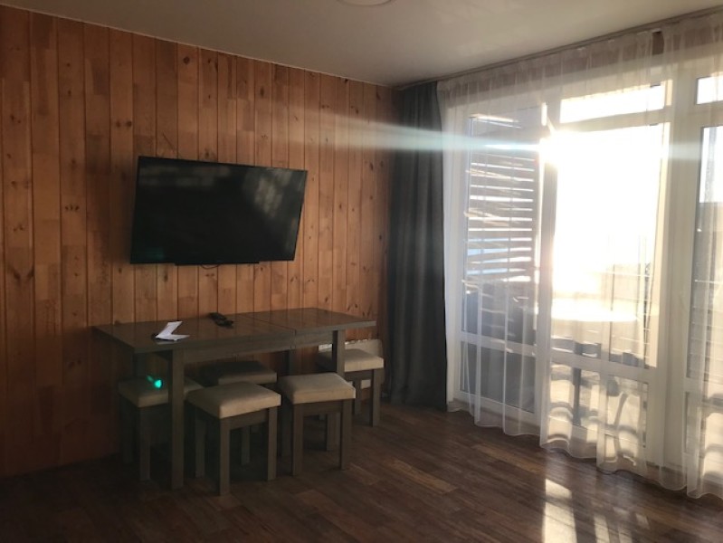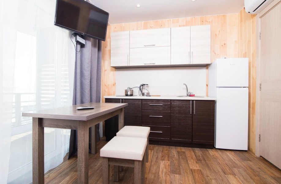 - Оборудование: кондиционер, микроволновая печь, плита индукционная, телевизор, холодильник, электрочайник