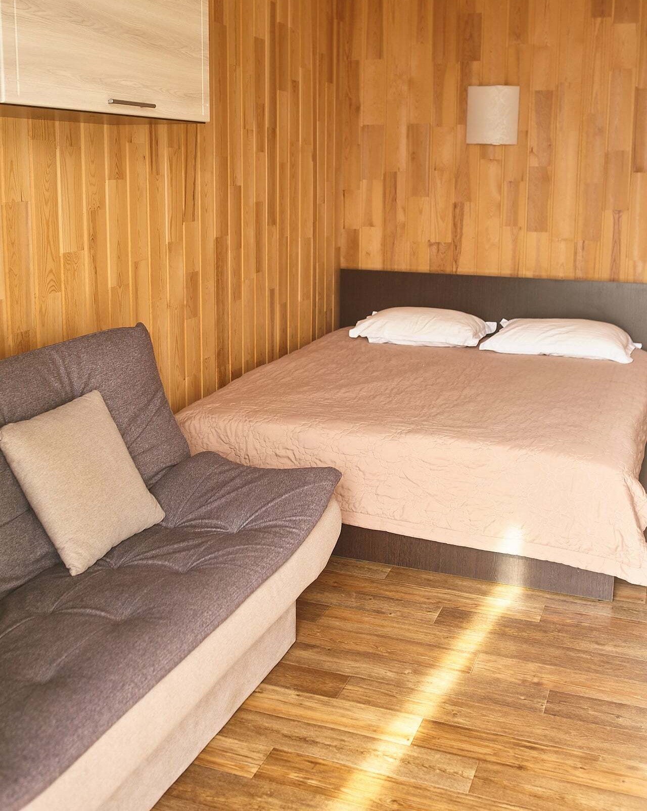- Мебель: диван раскладной, кровать двуспальная, прикроватные тумбочки, стулья