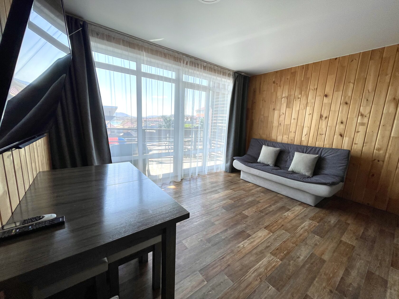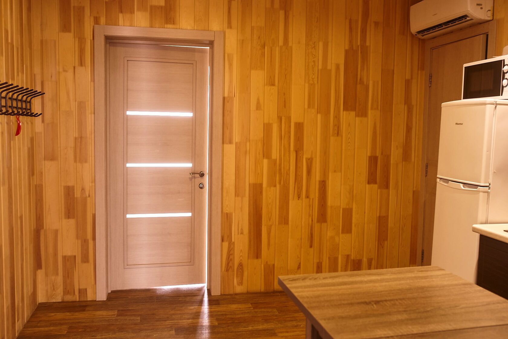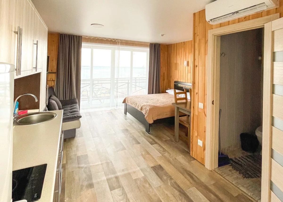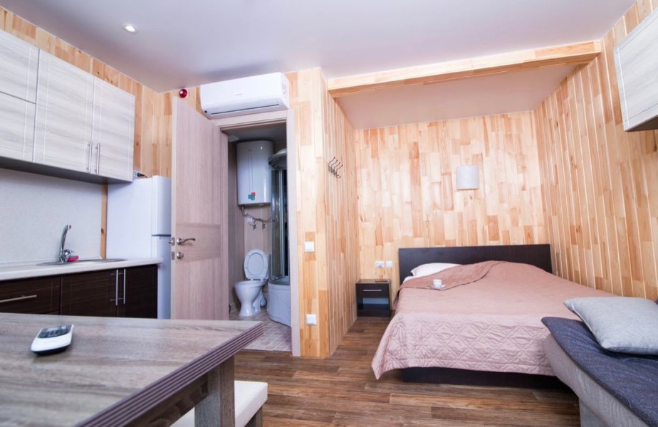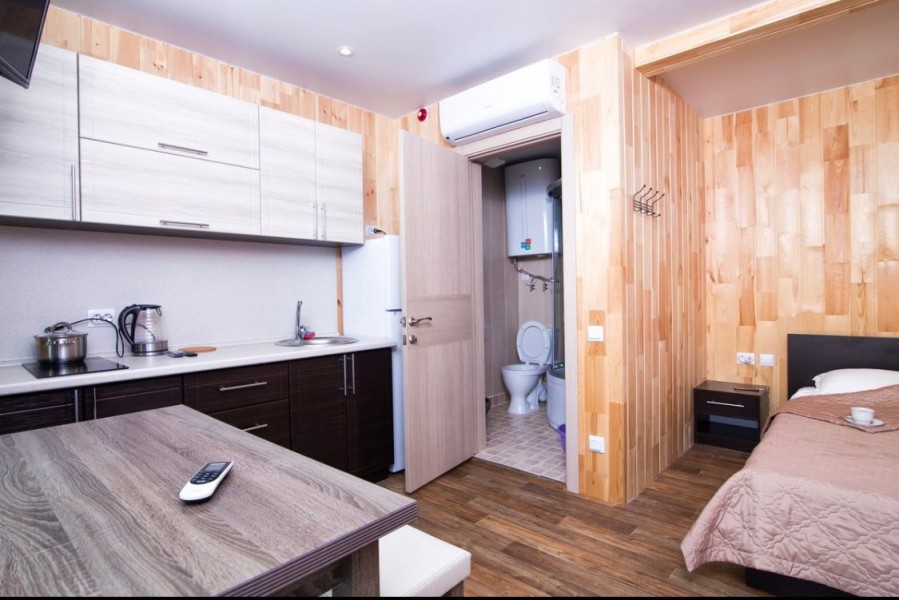 - Оборудование: кондиционер, микроволновая печь, набор посуды, плита индукционная, телевизор, холодильник, электрочайник
