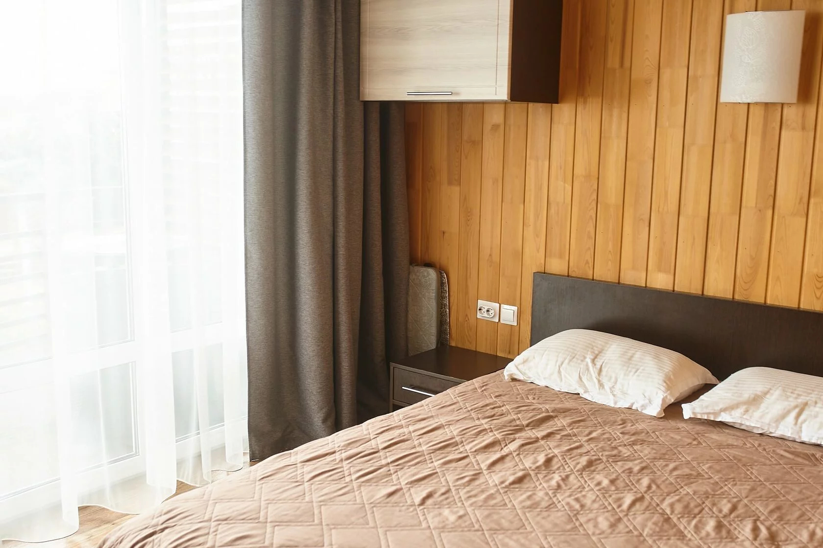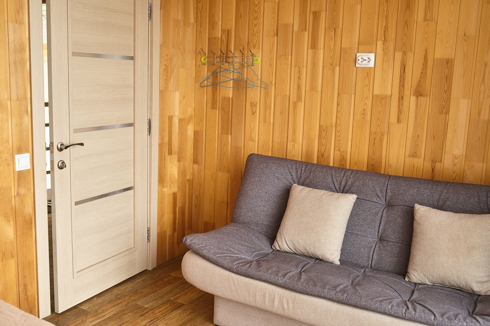 - Мебель: диван раскладной, кровати односпальные, кровать двуспальная, кровать двухъярусная, прикроватные тумбочки, стол, стулья, шкаф
