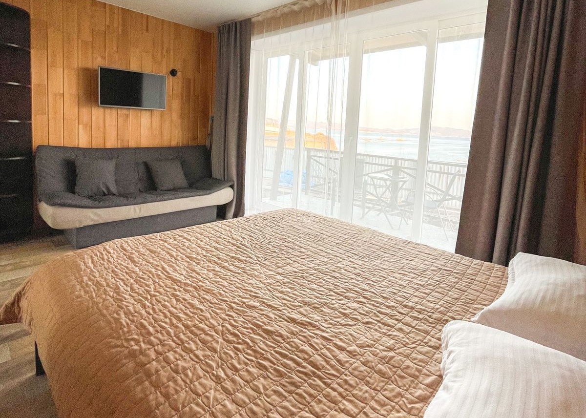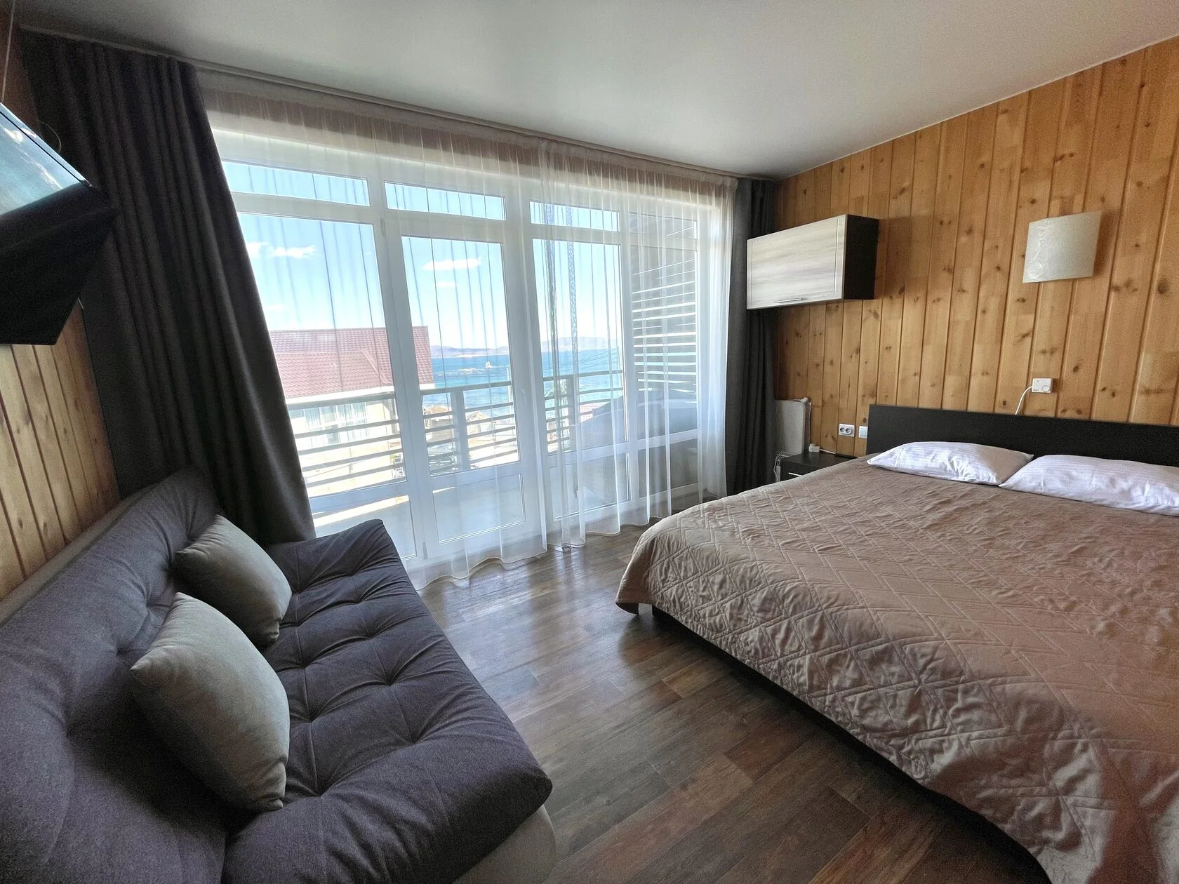 | Люкс Люкс 4-х местный с частичным видом на море | 30 кв.м. | 4 чел. | Балкон (с мебелью), Мебель (диван раскладной, кровать двуспальная, прикроватные тумбочки, стол, стул... |