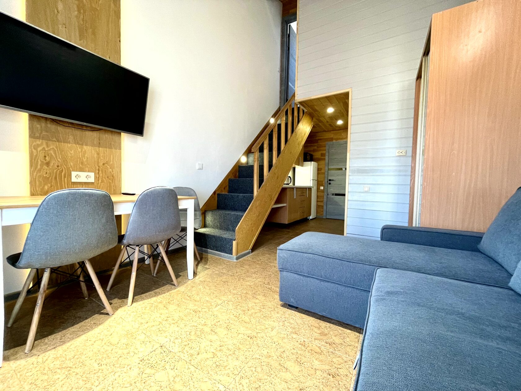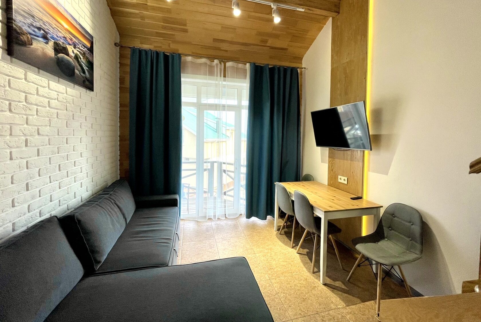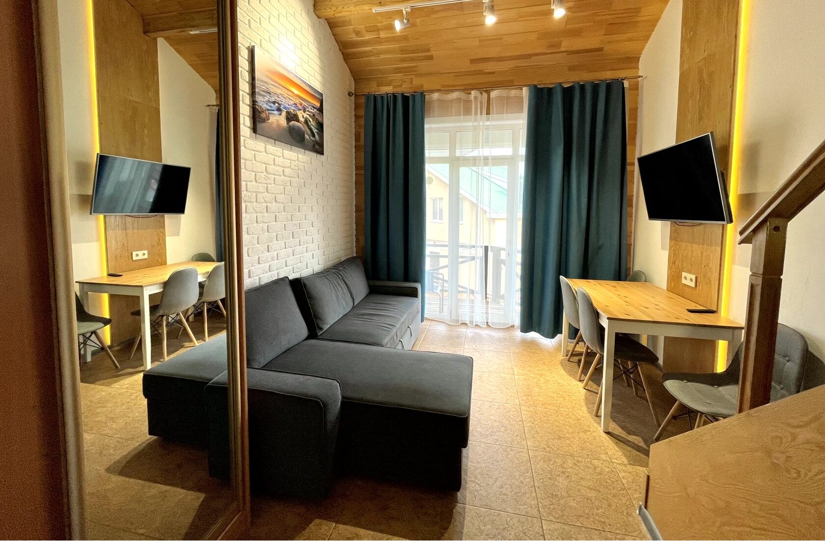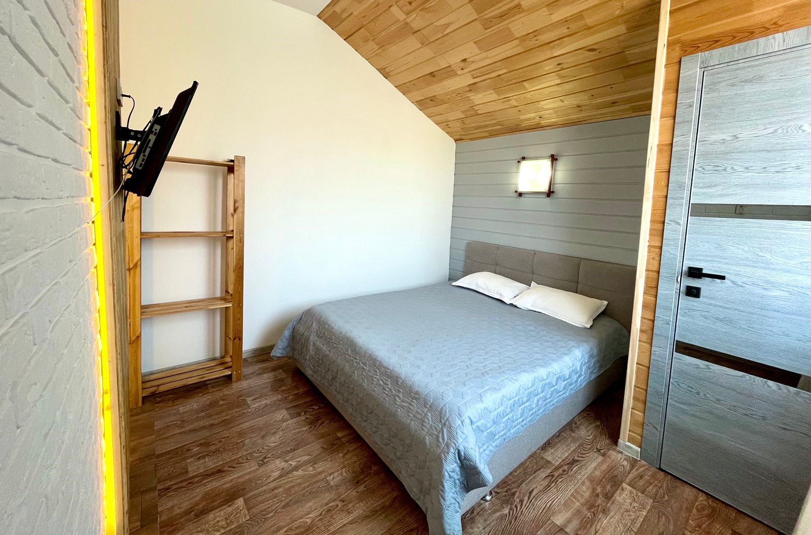 | Номер номер 2-х этаж DELUXE (2+2) | 40 кв.м. | 4 чел. | Мебель (диван, диван раскладной, кровать двуспальная, прикроватные тумбочки, стол, стулья, шкаф), Ми... | |